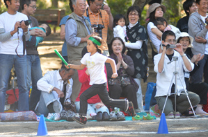 冒頭で出てきたカメラマンの「子供の運動会で便利だった」というのはどういう状況だったのでしょうか。彼のお子さんは保育園に通っており運動会をやるときは近くの公園を借りてやっているそうです。公園内には大きな木が何本かあり、ところどころ木陰ができています。運動会の徒競走の時走るコースの一部に木陰があったそうで、スタート地点は日向、走っている途中で木陰に入り(作例1)、ゴールはまた日向(作例2)という状況だったそうです。もしこの機能がなかったら日陰に入ったとき明るく写すためにシャッター速度を落とさなければならなかったかもしれませんが、それではブレが心配です。彼が「便利だった」と言ったのは絞りは開放を使いたい、シャッター速度は高速がいい、という条件をこの機能でクリアできたからです。