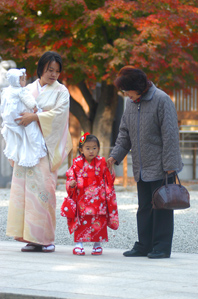 来月は11月、七五三です。私の子供たちが七五三の時、3人ともに着物を着せていきました。写真は私が撮りましたが、行く前にダンナが「皆で撮るときは交代で撮るよ。そうすれば麻子も写れるじゃん」と言ってくれたので、そうしようと思っていました。ところがいざ出かけてみると、混雑した神社の境内を3人の手を引いて写真を撮りながら歩くのに精いっぱいで、写真を交代で撮ることなどすっかり忘れ、結局私が写っている写真は一枚もなし、ということになってしまいました。いつものことなので私はあんまり気にしてないのですが、ダンナは将来子供たちに「ママ写ってないじゃんって突っ込まれるだろうなあ」と苦笑いしていました。今週は七五三の撮り方を紹介します。