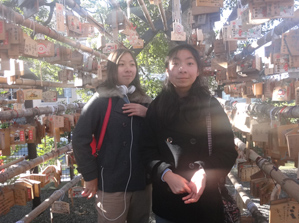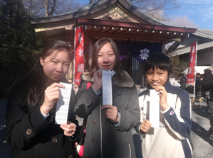 作例2はおみくじを持って神社の建物の前で撮りました。背景はいいのですが順光の日向になっているため顔に日が当たっています。この状態だと撮られている人はまぶしくて目が細くなってしまい、目つぶりも多くなります。また、まぶしいのを我慢しているため笑顔にもなかなかなりません。できれば背景の建物が入るところで顔に直接日が当たらない場所に移動して撮りましょう。日陰でも日中シンクロでストロボを使えば背景と人物をバランスの良い明るさで撮ることができます。