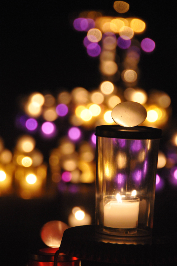 キャンドルがきれいに並んでいる様子もいいのですがアップで撮るのもおしゃれな感じに仕上がっていいと思います。アップにするときは前か後ろにほかのキャンドルをボケにして入れるときれいです(作例5)。主役のキャンドルを決めたら背景にちょうどいいものが入る角度を探してみましょう。この時絞りを開放にして撮るとボケが丸く大きく柔らかい感じで写ります。絞って撮ると、ボケに絞りの形が出てしまいます。たとえば八角形の絞りのレンズであればボケも8角形になり、しかもボケ自体が小さくなります。たいていのレンズは解放にすればボケが丸になるので、こういう場合は絞り開放がおすすめです。