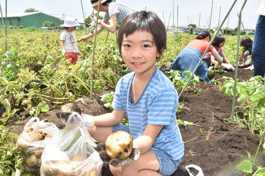 外で過ごすのが気持ちの良い季節です。梅雨に入ると雨が多くなりますが、まだお天気の良い日が多いので、この時期にはうちではよくお芋ほりに行きます。地元にジャガイモを掘らせてくれる畑があるので新ジャガをたくさん掘ってきました。「収穫」は子供たちにとって楽しいイベントです。楽しい一日のスナップを撮って家族のアルバムに一ページをくわえましょう。