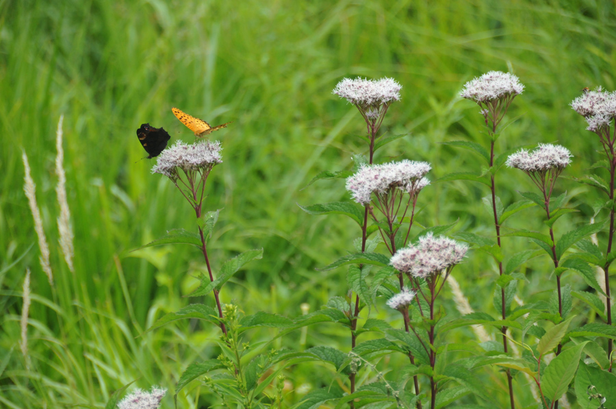 当然のことながら蝶やトンボなどは人間がある程度の距離まで近づくと逃げてしまいます。離れたところからある程度の大きさに撮るには望遠レンズがあると便利です。昆虫の種類によってはマクロレンズで近づいて撮ることもできますが、昆虫は小さな被写体なので望遠レンズがあったほうが便利です。