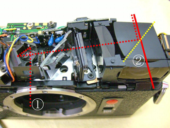 レンジファインダーは1と2の経路により三角測量をして距離を測るのである。