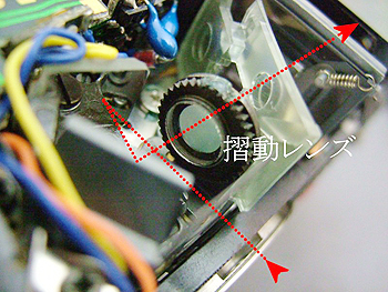 拡大画像で解説するが、今回は、摺動レンズ(上下調整)に飛蚊症(カビ)がある。