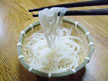 更科粉の主な成分はデンプンであり、繋げるのは至難の業です。そんな、扱いにくい更科粉を十割りで打つのです。