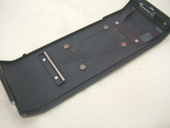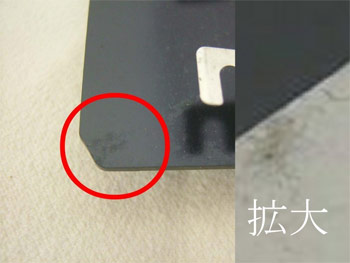 圧板の裏にもカビ(赤丸部)がありますネ。他の圧板部のカビを拡大してみました。中心より菌糸が伸びています。