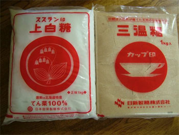 砂糖は、春に北海道旅行をした際に「よっこらしょ!」と「てん菜糖100%」(砂糖大根から作った砂糖)を買って来たんです。