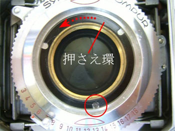 シャッター基部をしっかりと押さえ、前玉を外す。