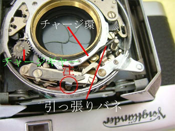 チャージギヤーとチャージ環の引っ張りバネの掛かりを逃がし、外す。