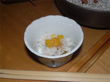 しおりを読みますとご飯に合うとかで、一口ずつの試食です。確かに美味しく、何杯もお代わりしたくなります。次回、頂いたときは、独り占めにしたい一品です。