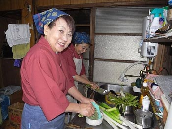 盛りつけ奉行は、冷たい山水に手をツツジ色に染めておりました。