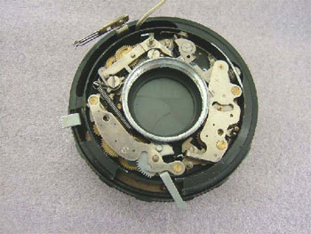 絞り羽根に油分の潤湿が見られ、作動が重い。之までの機種は、シャッター部を座金で締め付けてあるだけですので、緩んでシャッターチャージ不足の持病がありました。