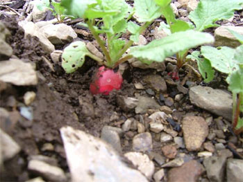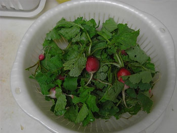次の作業まで日が空き、育ち過ぎで、"す"が入りますから参加者でラディシュを分けてくださいと伝えましたところ蕎麦友より調理報告が届きました。