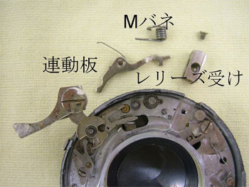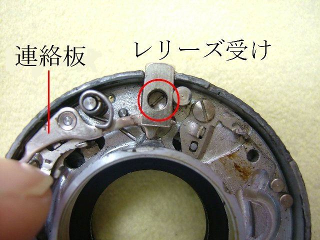 レリーズ受けを外し、連絡板のバネを逃がしながら分離する。