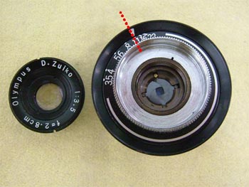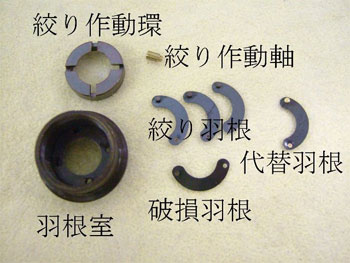 絞り羽根を組み込んだ所です。枚数は4枚ですが、小さな物で組み込みにチョット苦労します。