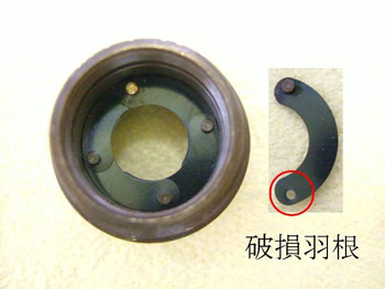 最悪でした。一枚の絞り羽根のダボが取れています。
