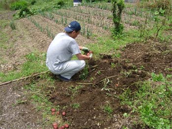 埼玉農園同様アンデスレッドは良い生育をしておりましたが、病魔に冒されたジャガイモを掘り起こした後ろ姿が小さく見えます。落胆の様子がありありです。
