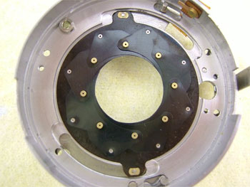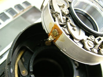段ネジを止めることで機能が回復しましたが、本復とは行かず、シャッター・絞り羽根に油分の湿潤が認められますので、更に開腹をすることにしました。