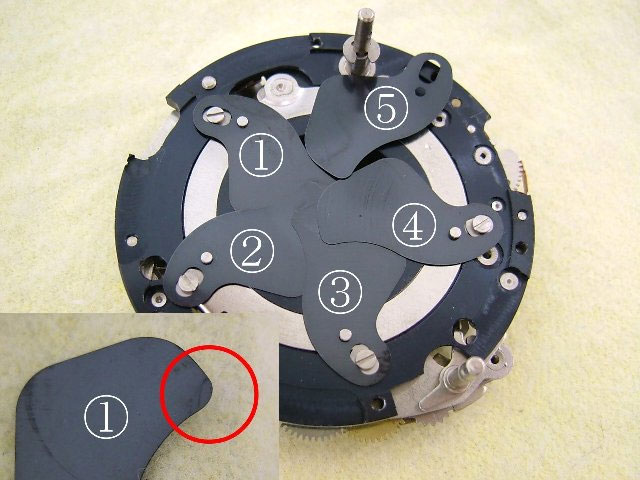 絞り羽根は、レンズのF値が暗いために開放値の修正がされています。