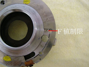 F値制限ネジを外して全開放で組みますと作業が楽になります。