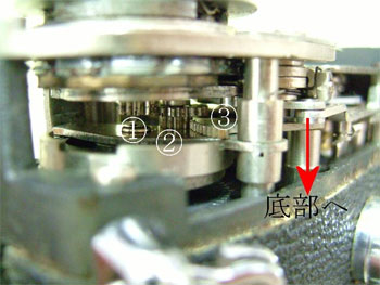 1がASA歯車で2がアイドル歯車・3が扇形歯車で情報を伝える仕組みだ。