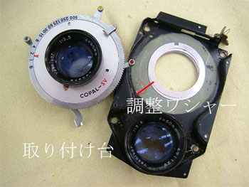 シャッターを止めています座金を外すと、取り付け台からシャッターが分離します。