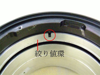 絞り軸ネジは、絞り値環に連絡する貫通ネジとなっている。