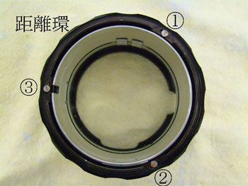 1から3のネジを外し、距離環を分離する。