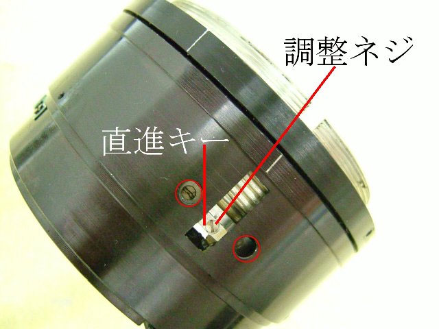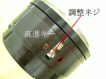 直進キーにある調整ネジは楔型で、ヘリコイド左右ガタの調整用をする。