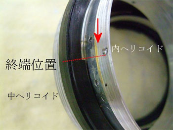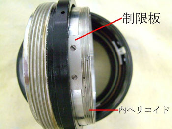 中・内ヘリコイドを外ヘリコイドと分離し、内ヘリコイドにある制限板を外す。