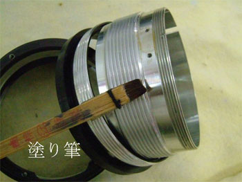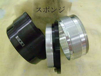分離した各ヘリコイドは、Aベンジンを浸したスポンジで清掃をする。