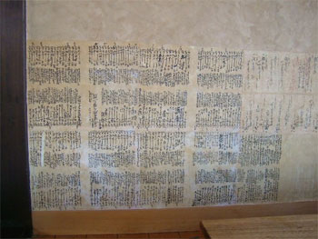 畳み席の腰板には古の書き付けが貼られており、注文後の空虚の時間を過ごすに適切かと思いますが、書の心得がありませんと解読が難しゅう御座いました。