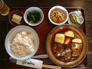 此方が、ビーフシュー定食でしてサッパリしたブラウンソースが素材の味を引き立たせております名物料理です。