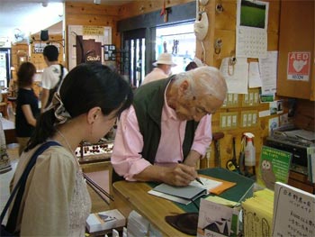 女性陣の希望により八ヶ岳倶楽部に寄りますと、柳生博氏が購入された書籍に添え書きのサービスを致しておりました。