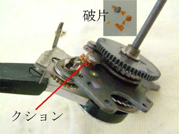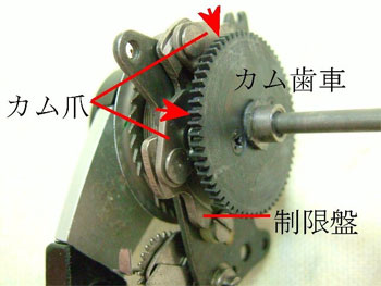 比べた結果、カム爪がカム歯車に咬合する動作が緩慢であり、脚気の病に冒されたのです。