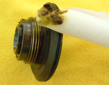 ヘリコイドを廻すとかなり重い。グリスを拭うと経年変化で固形石鹸間近である。