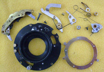シャッターを分解し、油分の湿潤を確認すれば不可解な湿潤(赤丸部)である。
