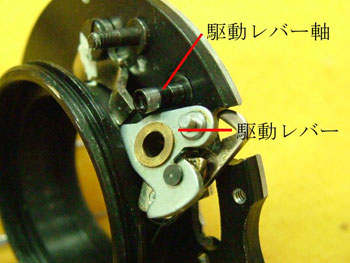 全ての動作の源でもあり、肝心要な注油箇所です。駆動レバー軸の状態を確認し、錆等が無ければ注油をして駆動レバーを組み込みます。