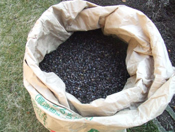 「たかさご」のお店から戴く蕎麦殻です。土壌改良にもってこいの材料で廃棄するなど以ての外です。自家製粉しているからこそ戴けるのですが、人力ですので一袋しか運べないのです。吟味された玄蕎麦は蕎麦殻も畑には良いものと思います。