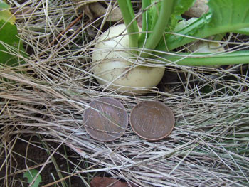小蕪が成長し10円硬貨2ヶ程になりました。もそっと育てましょうかね!