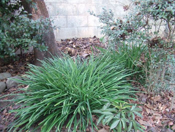 曼珠沙華の葉の先に落ち葉を集め米糠・油粕と混ぜて積んでおきましたが、発酵が進んだのか高さが低くなっております。
