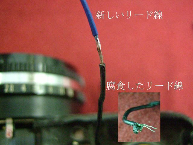 電池室よりマイナス電極のリード線が露出計に繋がっています。