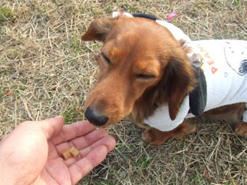 本日、初めての食事です。家では余り食べたがりませんが、他の犬に食べられて仕舞うと思うんでしょうか?公園では素直に食べます。