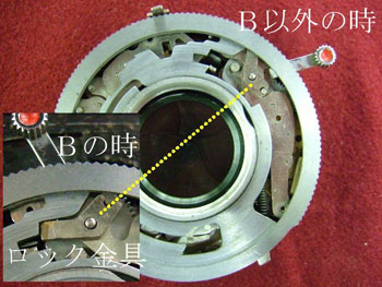 プロンターシャッターの亜種であるシチズン製は、シャッター秒時をBにしますとセルフタイマーが使用できないようにロック金具でセットを出来なくしています。