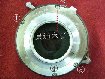 裏側にある楽屋裏?を隠す嵌め込みの反射防止筒を抜き去り、後玉を外し、座金を外せば本体よりシャッターが分離する。シャッターと本体との間にピント調整用の調整盤があります。