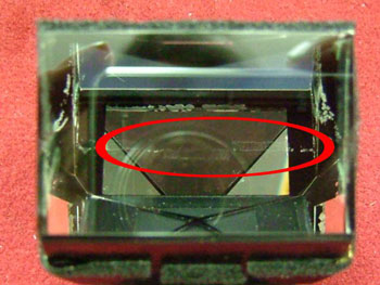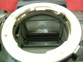 元凶は、焦点板の卓袱台を囲むように配置されたモルトです。加水分解したモルトはシャッターミラーで煽られ、卓袱台をひっくり返した状態です。