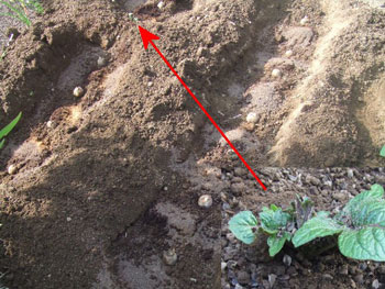 インカの目覚めの作上を致しました。おや、畝の間にも目を出しています。