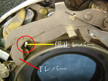 レリーズを離しますとTレバーが係止レバーを御用だと捕縛するのです。