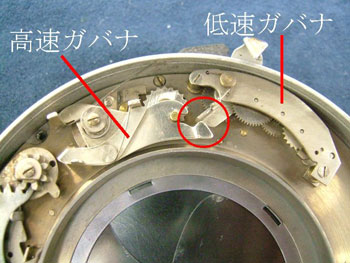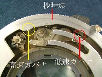 高速秒時の場合には低速ガバナが作用しないよう、秒時環に刻まれたカムで押さえられています。同じようにカムに沿って高速ガバナの作用時間を制御しているのです。