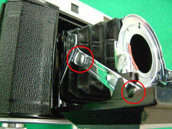 この様な襷の不具合はコツがいるのです。油分切れだろうと注油すれば済むことでは無いのです。ブラシでリベット部(赤丸部)をブラシでゴシゴシしてゴミを掻き出します。